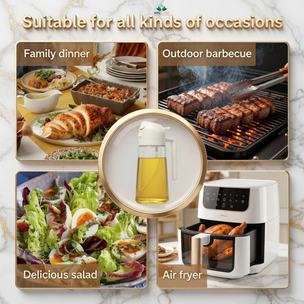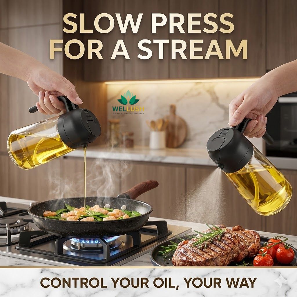 Whether you're cooking, grilling, baking, or preparing salads, this versatile olive oil dispenser allows you to either spray a fine mist or pour smoothly — reducing excess oil usage and preventing waste.