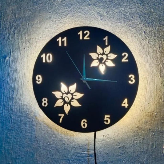 Flower Wooden Clock with Premium Light