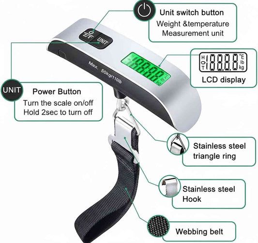 Portable Digital Luggage Scale — LCD Display & Unit Conversion for Travel