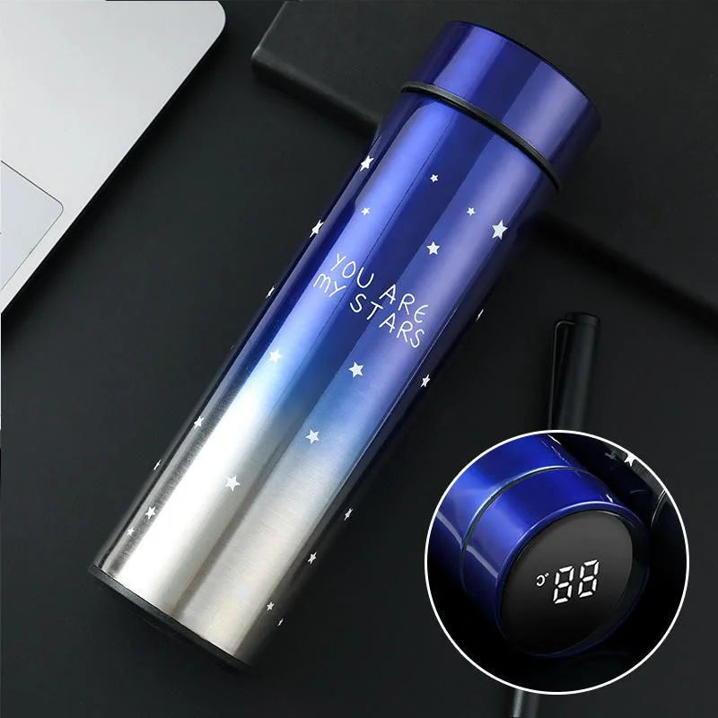LED Temperature Display Water Bottle Stars Design | Smart Stainless Steel Vacuum 500ml Flask | Random Color